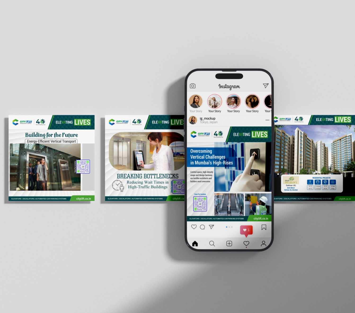 We collaborated with City Lift India Ltd to strengthen their brand presence and communication across digital, print, and physical platforms. The objective was to reflect trust, engineering excellence, safety, and technological advancement while maintaining a strong, consistent corporate identity.